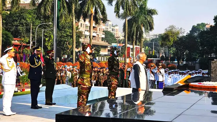 রাষ্ট্রপতি মো. সাহাবুদ্দিন, প্রধান উপদেষ্টা অধ্যাপক ড. মুহাম্মদ ইউনূস ও তিন বাহিনীর প্রধান সশস্ত্র বাহিনী দিবসে শিখা অনির্বাণে শ্রদ্ধা নিবেদন করেছেন। আজ বৃহস্পতিবার সকালে ঢাকা সেনানিবাসের শিখা অনির্বাণে পুষ্পস্তবক অর্পণের মাধ্যমে এ শ্রদ্ধা জানান।