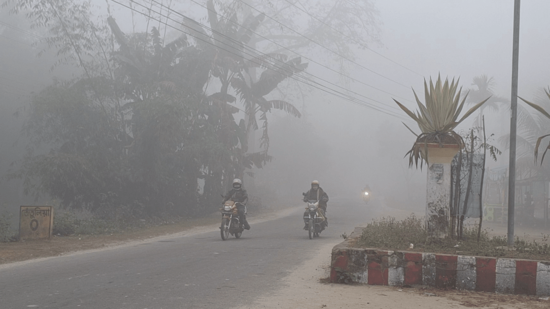 তীব্র ঠাণ্ড হওয়ায় তারা কাজের জন্য বাইরে বের হতে পারছেন না। এ ছাড়া ঘন কুশায়ার কারণে রাস্তায় হেডলাইট জ্বালিয়ে চলাচল করছে যানবাহন।