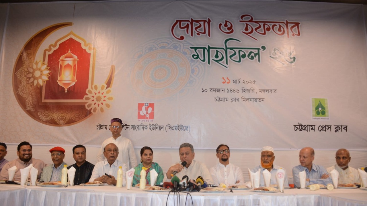 মঙ্গলবার ১১ মার্চ চট্টগ্রাম প্রেস ক্লাব অন্তর্বর্তী কমিটি ও চট্টগ্রাম মেট্রোপলিটন সাংবাদিক ইউনিয়ন (সিএমইউজে) আয়োজিত ইফতার মাহফিলে প্রধান অতিথির বক্তব্যে এসব কথা বলেন।
