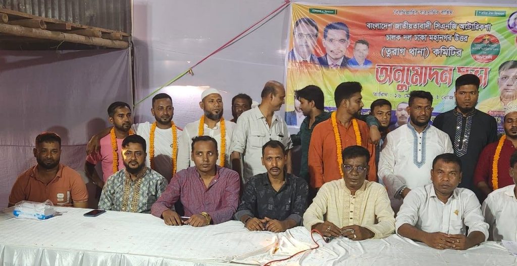 ১৬ মে ২০২৫, শুক্রবার বাংলাদেশ জাতীয়তাবাদী সিএনজি অটোরিকশা চালক দল, ঢাকা মহানগর উত্তর (তুরাগ থানা) শাখার ৪৮ সদস্যবিশিষ্ট নবগঠিত কমিটির আনুষ্ঠানিক অনুমোদন সভা অনুষ্ঠিত হয়। উক্ত কমিটিতে আহ্বায়ক হিসেবে দায়িত্ব গ্রহণ করেন জনাব মোঃ ওয়াহিদুল ইসলাম এবং সদস্য সচিব হিসেবে মোঃ আসাদুজ্জামান আসাদ।