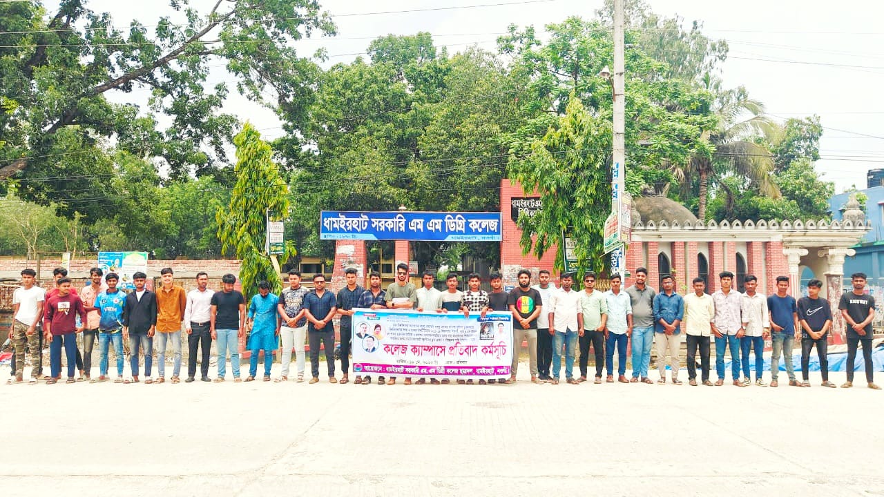 নওগাঁর ধামইরহাট সরকারি এম এম ডিগ্রি কলেজ ক্যাম্পাসে প্রতিবাদ কর্মসূচি অনুষ্ঠিত হয়েছে।