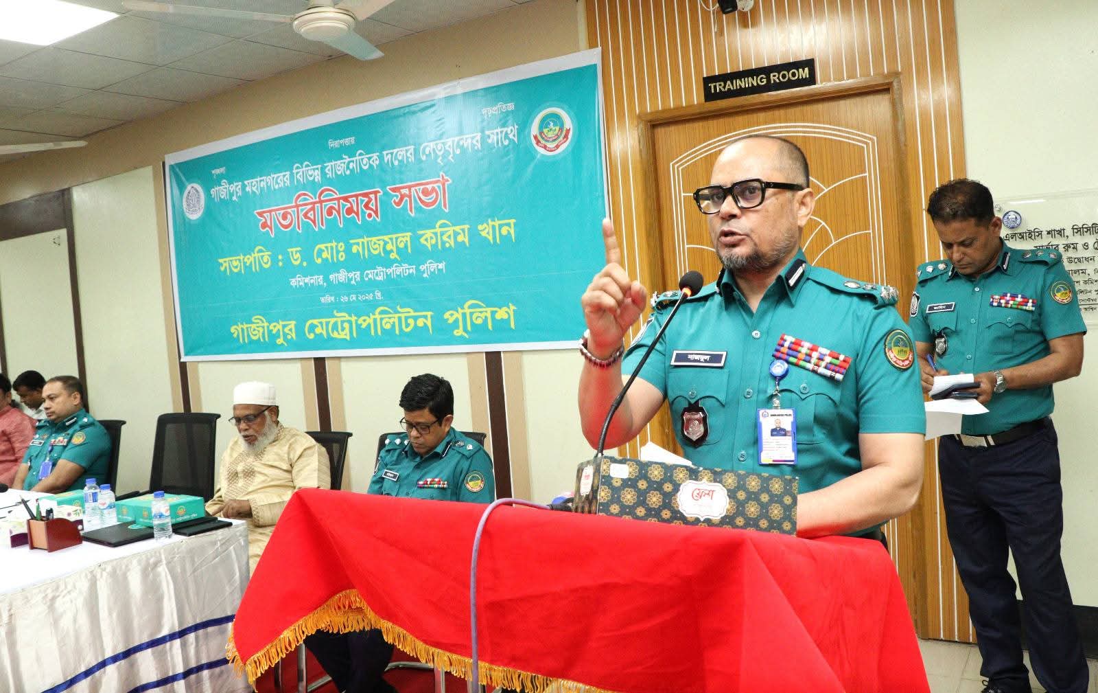 রাজনৈতিক নেতৃবৃন্দ জনগণের সাথে সরাসরি সম্পৃক্ত। আপনারা সকলে নিজ নিজ অবস্থান থেকে মাদক, অপরাধ এবং সন্ত্রাসবিরোধী সামাজিক আন্দোলন গড়ে তুলবেন। গাজীপুর মহানগরকে একটি সুরক্ষিত, শান্তিপূর্ণ ও অপরাধমুক্ত নগরীতে রূপান্তরিত করার লক্ষ্যে পুলিশকে সহযোগিতা করার আহ্বান জানান।