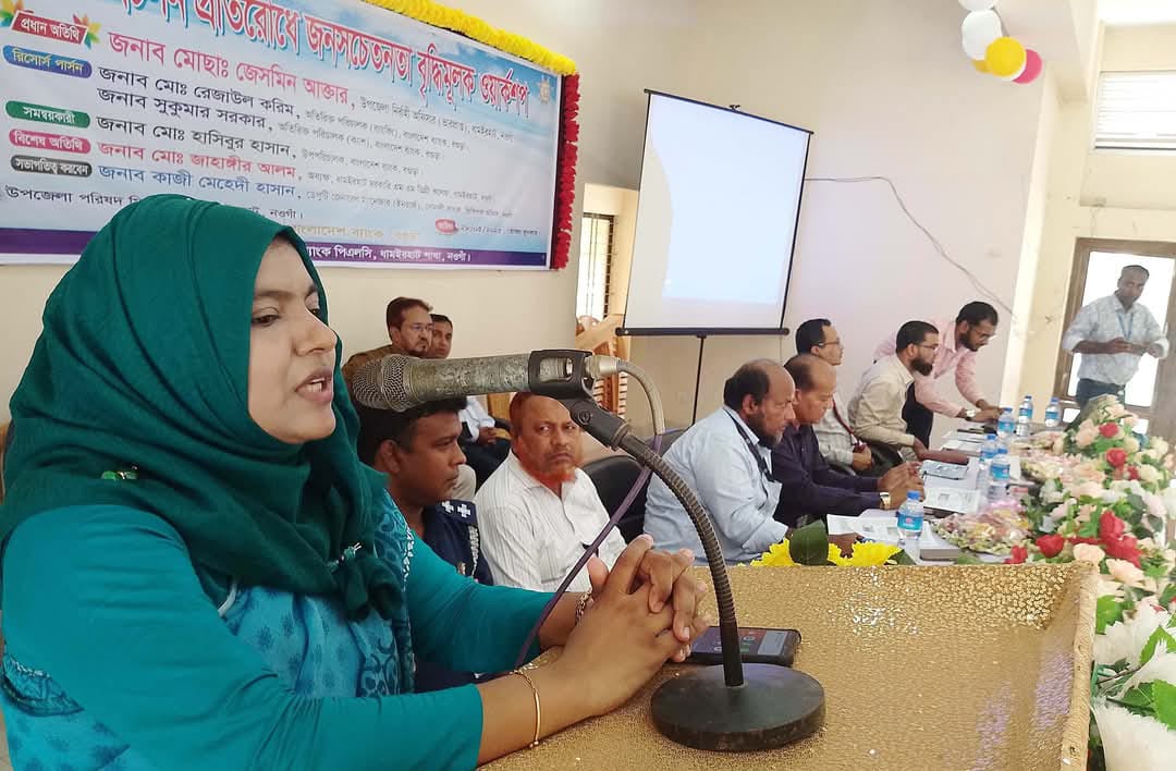নওগাঁর ধামইরহাটে জালনোট প্রচলন প্রতিরোধে জনসচেতনতা বৃদ্ধিমূলক ওয়ার্কশপ অনুষ্ঠিত হয়েছে, গতকাল বুধবার (২৮ মে) বেলা ১০টায় ধামইরহাট উপজেলা পরিষদ অডিটোরিয়াম হলরুমে নওগাঁ সোনালী ব্যাংক প্রিন্সিপাল অফিসের ডেপুটি জেনারেল ম্যানেজার কাজী মেহেদি হাসানের সভাপতিত্বে ও ধামইরহাট সোনালী ব্যাংকের ম্যানেজার এস বুলবুল আহমেদের সঞ্চালনায় প্রধান অতিথির বক্তব্য প্রদান করেন উপজেলা নির্বাহী অফিসার (ভারপ্রাপ্ত) মোছা. জেসমিন আক্তার।