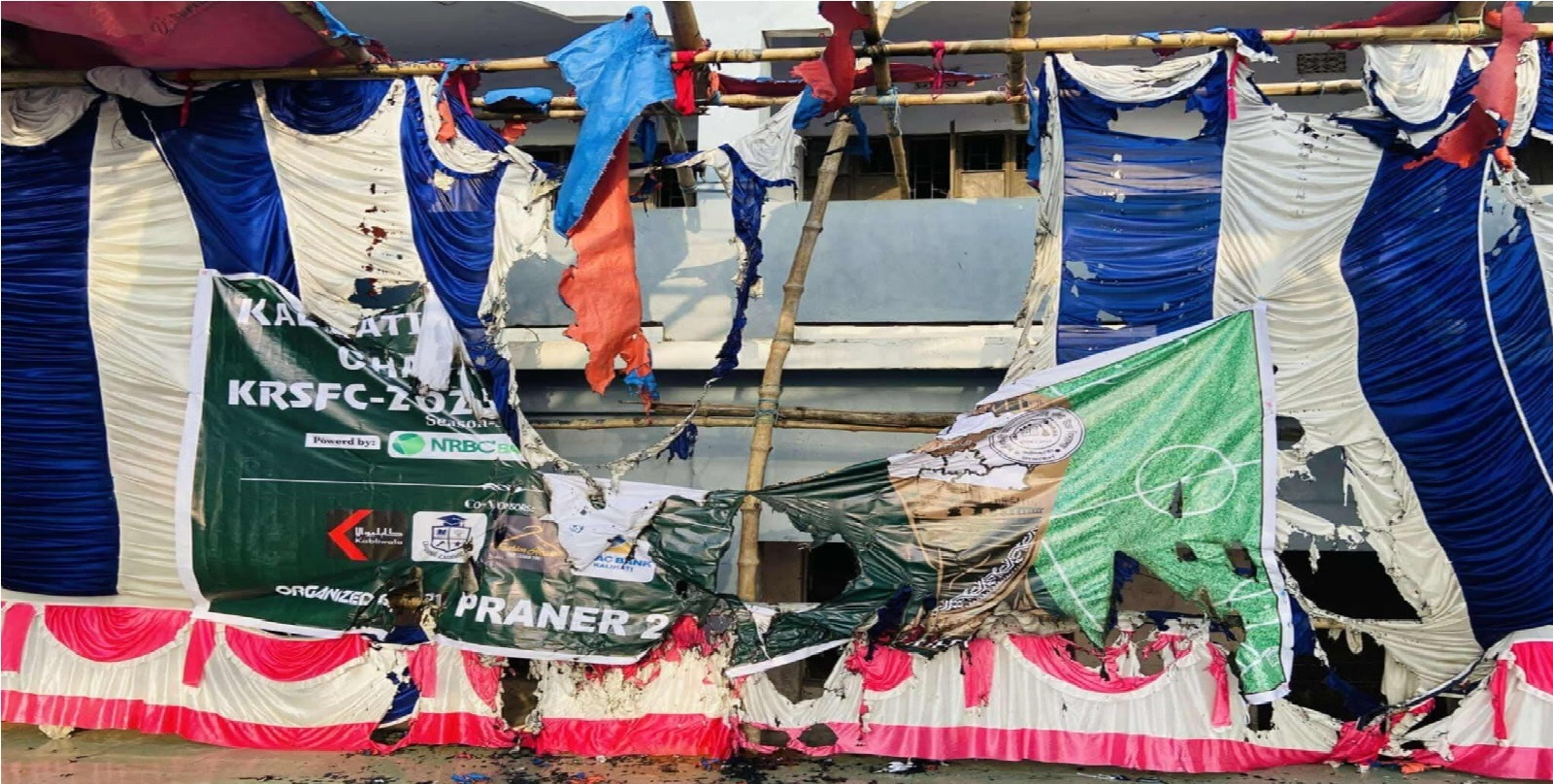 আজ ১২ জুন ফাইনাল খেলা অনুষ্ঠিত হওয়ার কথা থাকলেও, গত রাত্রে অজ্ঞাতনামা ব্যক্তি বা ব্যক্তিবর্গ খেলার আয়োজন উপলক্ষে মাঠে তৈরি করা মঞ্চে আগুন ধরিয়ে দেয়। এতে মঞ্চটি সম্পূর্ণভাবে পুড়ে যায় এবং আয়োজকদের মধ্যে চরম হতাশা নেমে আসে।