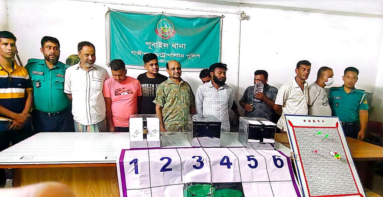 গত বুধবার ২রা জুলাই বিকাল ৫.৪৫ ঘটিকায় পূবাইল থানাধীন মেঘডুবি সাকিনস্থ সাবরিনা ড্রিম রিসোর্ট পার্কের কর্টেজ এর কক্ষের ভিতর প্রবেশ করিলে আসামীগন পালানোর চেষ্টা করে, পরে পুলিশ উপরোক্ত আসামীদেরকে কক্ষের ভিতরে ওয়ান- টেন জুয়া খেলারত অবস্থায় ৯ জনকে গ্রেফতার করেন।