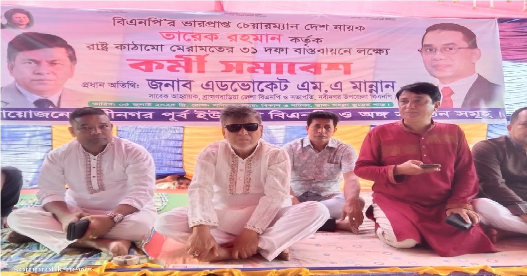 ব্রাহ্মণবাড়িয়ার নবীনগর পূর্ব ইউনিয়ন বিএনপি ও অঙ্গ সংগঠনের উদ্যোগে ৩১ দফা বাস্তবায়নের লক্ষ্যে এক কর্মী সভার আয়োজন করা হয়।