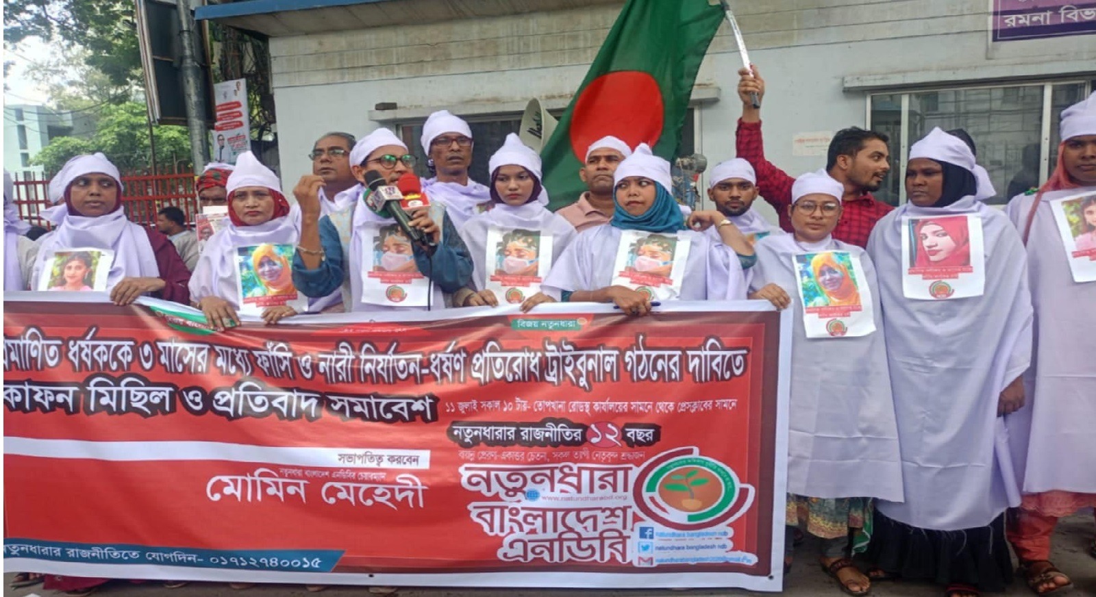 নতুনধারা বাংলাদেশ এনডিবির চেয়ারম্যান মোমিন মেহেদী বলেছেন, জুলাই চেতনা বিক্রিকারী রাজনৈতিক প্লাটফর্মগুলোতে ধর্ষণ-নিপীড়নের চর্চা হচ্ছে। ৩ মাসের মধ্যে প্রমাণিত ধর্ষকের ফাঁসি ও ধর্ষণ-নারী নির্যাতন প্রতিরোধ ট্রাইবুনাল গঠনের দাবিতে প্রতিকি কাফন মিছিল ও প্রতিবাদ সমাবেশে তিনি উপরোক্ত কথা বলেন।