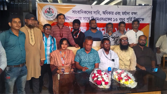 ১৫ জুলাই রাত ৮টায় বিএমএসএফের ১৩তম জন্মদিন এবং চৌদ্দ বছরে পদার্পন উপলক্ষে মিরপুর পল্লবীতে একটি রেষ্টুরেন্টের হলরুমে ঢাকা মহানগর উত্তর শাখা কমিটির আয়োজনে প্রধান অতিথি ছিলেন বাংলাদেশ মফস্বল সাংবাদিক ফোরামের ট্রাস্টি বোর্ডের চেয়ারম্যান আহমেদ আবু জাফর।সৈয়দ নুর ইসলাম জুয়েলের সঞ্চালনায় প্রতিষ্ঠা বার্ষিকী উপলক্ষে মনমুগ্ধকর পরিবেশে প্রথমে পবিত্র কুরআন তেলাওয়াত, জাতীয় সংগীত এবং সংগঠনের থিম সং পরিবেশন করা হয় ।