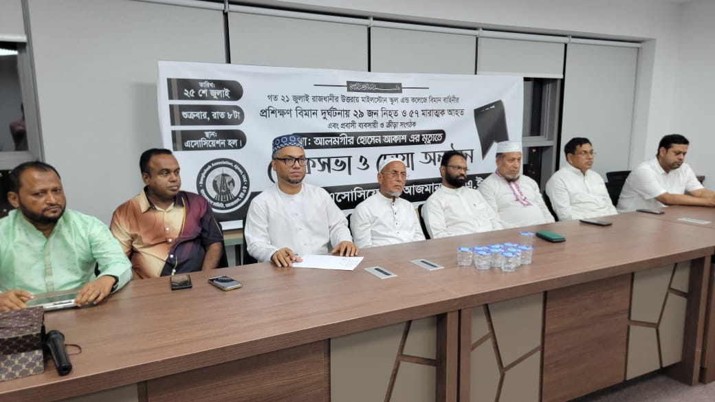 ঢাকার মাইলস্টোন স্কুল অ্যান্ড কলেজে বিমান দুর্ঘটনায় নিহত, আহত ও প্রবাসী ব্যবসায়ী মোহাম্মদ আলমগীর হোসেন আকাশের মৃত্যুতে শোক সভা ও দোয়া মাহফিল করেছে আজমানের বাংলাদেশ সমিতি।