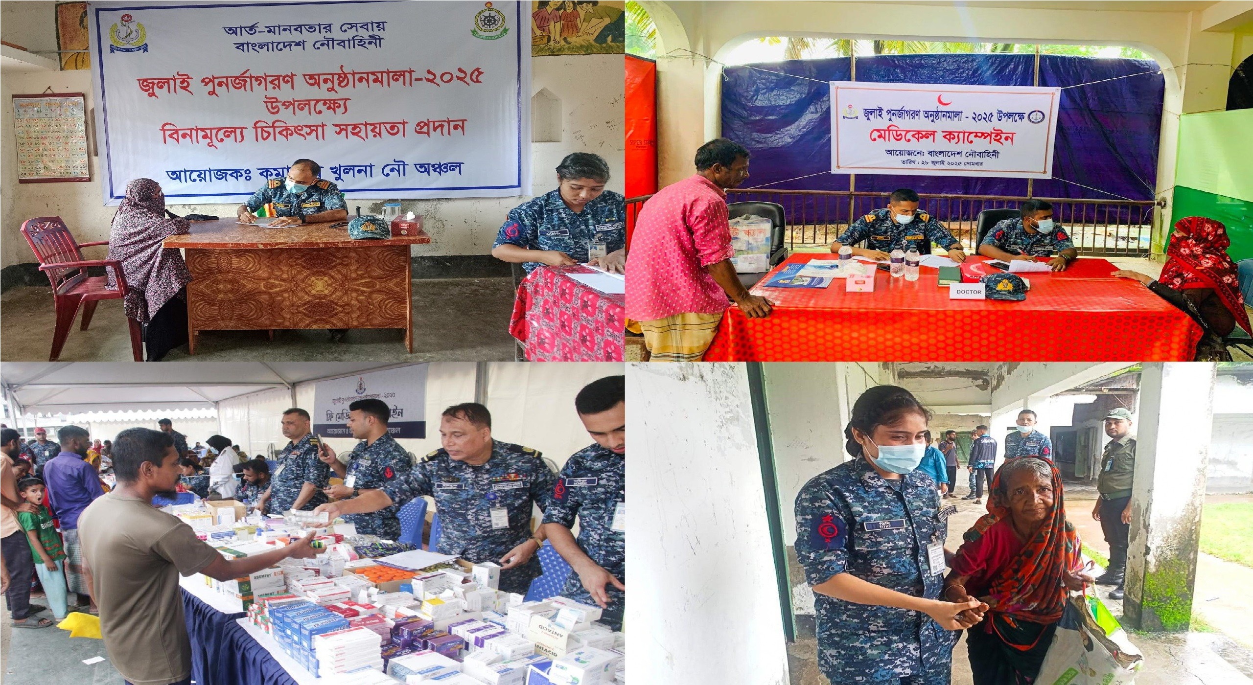 এছাড়াও, তাদেরকে বিনামূল্যে প্রয়োজনীয় ঔষধ প্রদান করা হয়। একইসাথে খুলনা নৌ অঞ্চল এর তত্ত্বাবধানে ভোলা জেলার তজুমুদ্দিন ও চরফ্যাশন, বরগুনার বামনা এবং খুলনার কয়রা উপজেলায় দিনব্যাপী মেডিকেল ক্যাম্প অনুষ্ঠিত হয়। এসব ক্যাম্পে সাধারণ রোগের পাশাপাশি জটিল সমস্যায় আক্রান্ত রোগীদেরও সেবা প্রদান করা হয়।