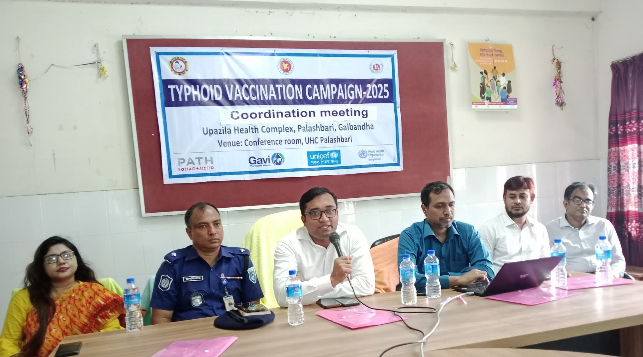 ৬ আগষ্ট বুধবার সকালে পলাশবাড়ী স্বাস্থ্য কমপ্লেক্স নিজস্ব হল রুমে পলাশবাড়ী উপজেলা স্বাস্থ্য পরিবার পরিকল্পনা কর্মকর্তা সালাউদ্দিন আহম্মেদ খান এর সভাপতিত্বে ও আরএমও ডাঃ দীপান্বিতার সঞ্চালনায় সেপ্টেম্বরে টাইফয়েট টিকাদান ক্যাম্পেইন টাইফয়েট জ্বর প্রতিরোধের উপর গুরুত্ব দিয়ে প্রধান অতিথির বক্তব্য রাখেন পলাশবাড়ী উপজেলা নির্বাহী কর্মকর্তা নাজমুল আলম, আরও উপস্থিত ছিলেন পলাশবাড়ী থানার ভারপ্রাপ্ত কর্মকর্তা জুলফিকার আলী ভুট্টু,সমাজসেবা কর্মকর্তা জিল্লুর রহমান, উপজেলা মাধ্যমিক অফিসার নকিবুল, প্রাথমিক শিক্ষা কর্মকর্তা আঞ্জুমান আরা গুলেনুর, একাডেমিক সুপারভাইজার আলমঙ্গীর হোসেন, আরডিএস ওম আশরাফুজ্জামান, সমাজ কল্যান সংস্থার অফিসার রুকশনা, পলাশবাড়ী প্রেসক্লাবের সাধারন সম্পাদক পাপুল, সাংবাদিক ছাদেকুল ইসলাম রুবেল, পৌর সভার অফিস সহকারী মেহেদী হাসান, ইউ এফ পিও আঃ জলিল পলাশবাড়ী ইসলামিক ফাউন্ডশনের ফিল্ড সুপার ভাইজার মাহবুবর রশিদ প্রমুখ।