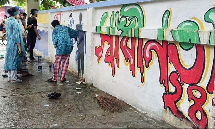 সরেজমিনে সরকারি সতীশ চন্দ্রবালিকা উচ্চ বিদ্যালয় ও এইচএমপি উচ্চ বিদ্যালয় কলেজের সামনে শিক্ষার্থীরা দেয়াল লিখনে মেঘ বৃষ্টি উপেক্ষা করেই একেঁছিলেন। অন্তত ৩০-৩৫ শিক্ষার্থী শিল্পকর্ম আঁকছিলেন। কেউ রং গোলাচ্ছেন, কেউ বা মনোযোগ দিয়ে বিভিন্ন আল্পনা এঁকে চলেছেন। দেশে যে সহিংসতা হয়েছিল তা ভুলে গিয়ে এগিয়ে যেতে চান সবাই। শিক্ষার্থীদের এমন শিল্পকর্ম নজর কেড়েছে পথচারীদের। অনেকেই দাঁড়িয়ে দাঁড়িয়ে দেখছেন এখনও এসব সৃজনশীল কর্মযজ্ঞ। আবার অনেকেই স্মৃতি হিসাবে তুলে রাখছেন এসব আঁকা গ্রাফিতি।