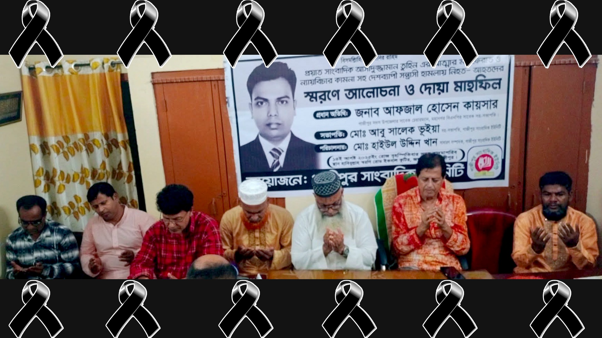 প্রয়াত সাংবাদিক আসাদুজ্জামান তুহিন এর হ*ত্যাকারীদের বিচার ও তার আত্মার মাগফেরাত কামনা সহ দেশব্যাপী সন্ত্রাসী হামলায় নিহত – আহতদের স্মরণে আলোচনা ও দোয়া মাহফিল অনুষ্ঠিত হয়েছে।