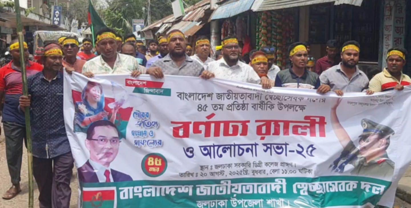 নীলফামারীর জলঢাকা উপজেলায় বর্ণাঢ্য আয়োজনে বাংলাদেশ জাতীয়তাবাদী সেচ্ছাসেবক দলের ৪৫ তম প্রতিষ্ঠাবার্ষিকী পালন করা হয়েছে।