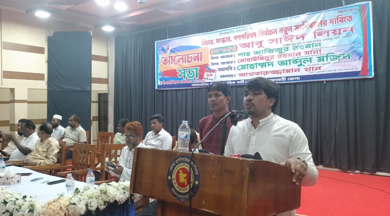সভায় সভাপতিত্ব করেন নীলফামারী জেলা জাতীয় নাগরিক পার্টির প্রধান সমন্বয়কারি আব্দুল মজিদ। প্রধান আলোচক হিসেবে উপস্থিত ছিলেন দলের কেন্দ্রীয় যুগ্ম মুখ্য সংগঠক আবু সাইদ লিয়ন। তিনি বলেন, “কেউ এ দেশকে নিজের দেশ মনে করে শাসন করেনি, বরং তারা বিদেশি এজেন্ট সেজে এ দেশকে শাসন করেছে।”তিনি আরও বলেন, সংস্কারের আগে একটি রাজনৈতিক দল নির্বাচন নিয়ে মরিয়া হয়ে উঠেছে, অথচ জনগণের প্রকৃত দাবি হলো সংস্কার ও নতুন সংবিধান।”