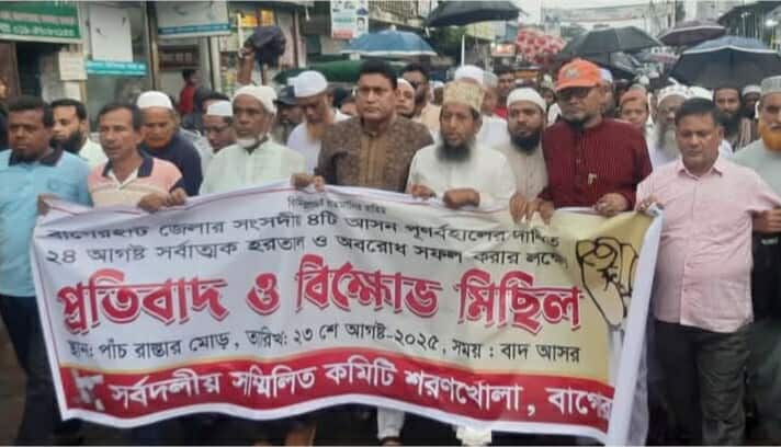 ইলেকশন কমিশন কর্তৃক সংসদীয় আসন ৯৮ বাগেরহাট-৪ বিলুপ্ত করে তিনটি আসন ঘোষণা করায় তার প্রতিবাদে বাগেরহাট জেলাব নয়টি উপজেলায় হরতাল অবরোধ বিক্ষোভ মিছিল ও পথসভা অনুষ্ঠিত হয়েছে।