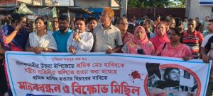 তিনি আরও দাবি করেন, নীলফামারীর নিহত শ্রমিক হাবিবসহ সকল শ্রমিক হত্যার বিচার করে দোষীদের সর্বোচ্চ শাস্তি নিশ্চিত করতে হবে। একইসঙ্গে শ্রমিক ছাঁটাই, নির্যাতন, মামলা-হামলা বন্ধেরও আহ্বান জানান।