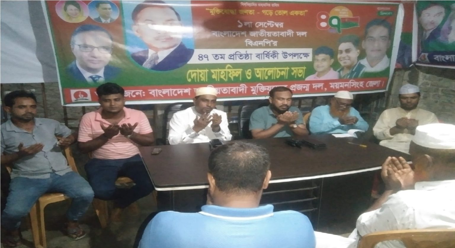 জাতীয়তাবাদীদল বিএনপির ৪৭ তম প্রতিষ্ঠা বার্ষিকী উপলক্ষে বাংলাদেশ মুক্তিযুদ্ধের প্রজন্ম দল ময়মনসিংহ জেলা শাখার আয়োজনে ১/৯/২০২৫ইং রোজ সোমবার বাদ মাগরিব, ময়মনসিংহ জেলা কার্যালয়ে আলোচনা সভা ও দোয়া মাহফিল অনুষ্ঠিত হয়।