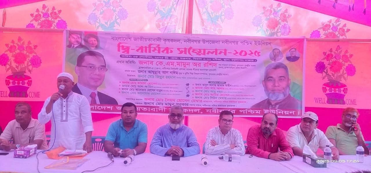নবীনগর পশ্চিম ইউনিয়ন কৃষক দলের ভারপ্রাপ্ত আহবায়ক মো. সৈয়দ হোসেন মেম্বারের সভাপতিত্বে ও সদস্য সচিব মো. মামুন সরকারের সঞ্চালনায় এতে প্রধান অতিথি হিসেবে উপস্থিত ছিলেন কেন্দ্রিয় কৃষক দলের সহ-সাধারণ সম্পাদক, জেলা বিএনপি’র সদস্য ও এমপি পদ প্রার্থী কে এম মামুন অর রশিদ।