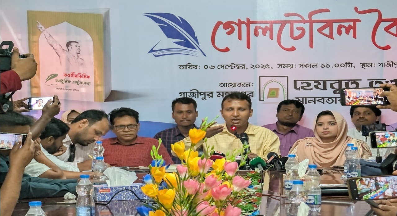 গাজীপুরে “রাষ্ট্র সংস্কারের প্রস্তাবনা: তওহীদভিত্তিক আধুনিক রাষ্ট্রব্যবস্থা” শীর্ষক গোলটেবিল বৈঠক অনুষ্ঠিত হয়েছে। শনিবার (৬ সেপ্টেম্বর) সকালে গাজীপুর প্রেসক্লাবের মিলনায়তনে হেযবুত তওহীদ গাজীপুর মহানগরের আয়োজনে এ আলোচনা সভা অনুষ্ঠিত হয়।