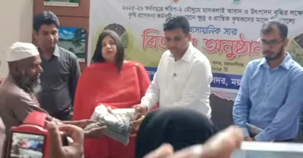 ময়মনসিংহ সদরে কৃষি প্রণোদনা কর্মসূচির আওতায় ২০২৫-২৬ অর্থবছরে খরিপ-২ মাসকালাই ফসলের উৎপাদন বৃদ্ধির লক্ষ্যে ক্ষুদ্র ও প্রান্তিক কৃষকদের মাঝে বিনামূল্যে বীজ ও রাসায়নিক সার বিতরণ করা হয়েছে।
