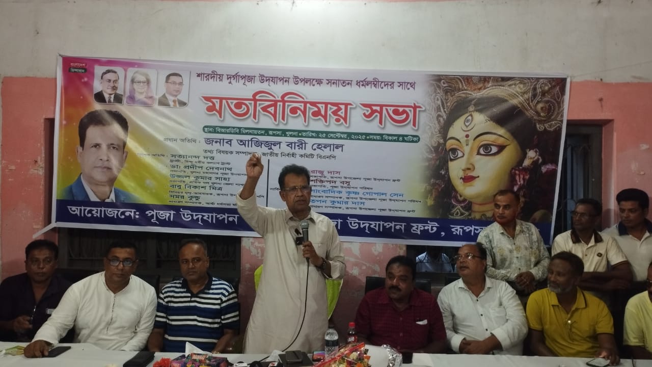 বক্তৃতা করেন পূজা উদযাপন পরিষদের সভাপতি শক্তিপদ বসু। আরো উপস্থিত ছিলেন রূপসা উপজেলা বিএনপির আহবায়ক