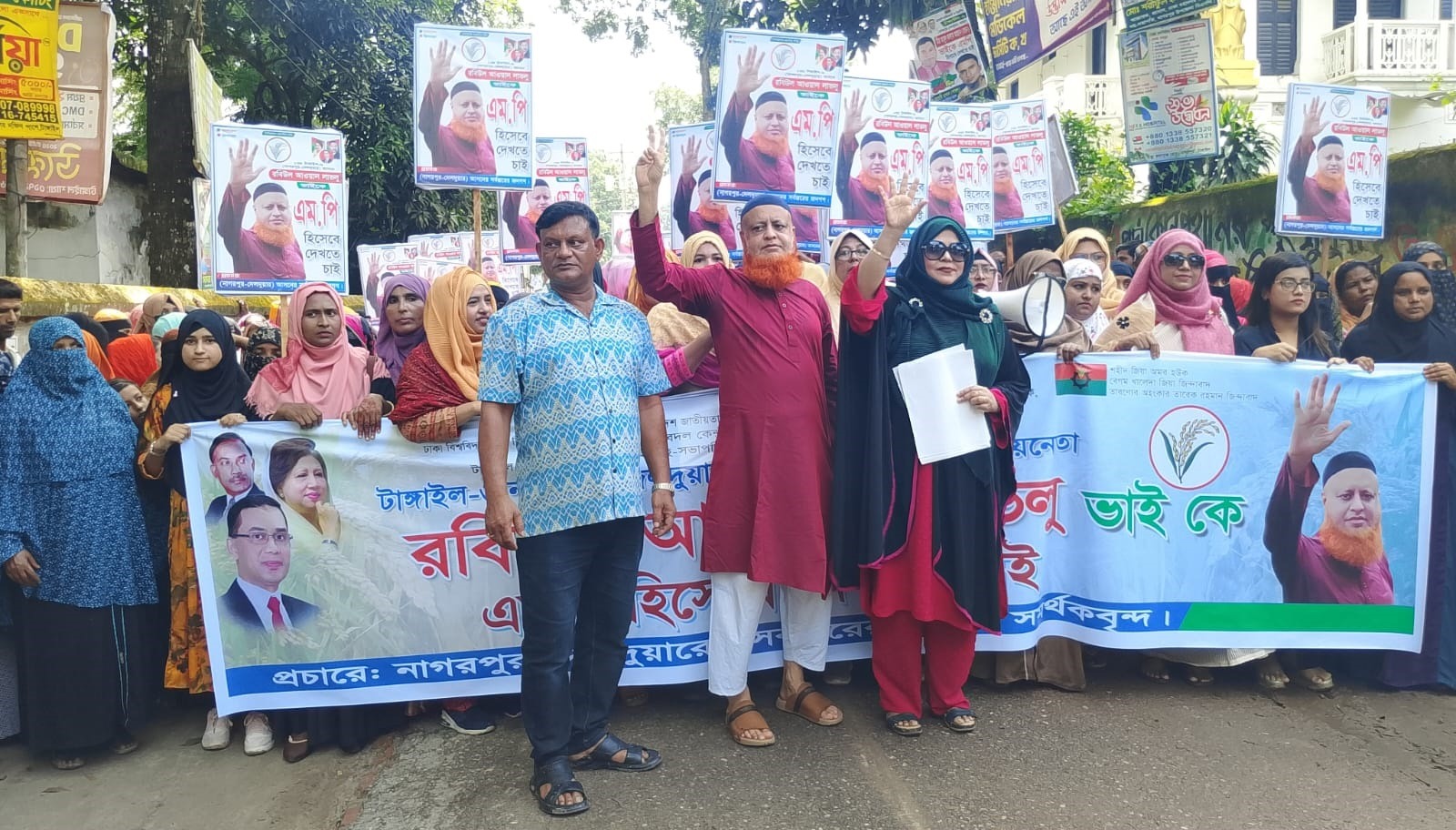 নাগরপুরে আজ সকালে কয়েক হাজার মহিলা (নাগরপুর-দেলদুয়ার) আসনে বিএনপি নেতা রবিউল আওয়াল লাভলু’র মনোনয়নের দাবিতে একটি বিশাল মিছিল, গণসংযোগ ও বিএনপির ভারপ্রাপ্ত চেয়ারপারসন তারেক রহমান কর্তৃক রাষ্ট্র কাঠামো মোরামতের ৩১ দফা দাবি সম্বলিত লিফলেট বিতরণ করেছে।