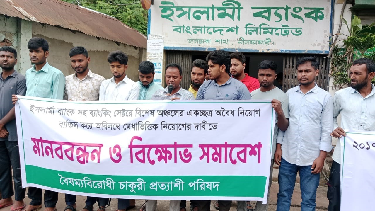 মানববন্ধনে বৈষম্য বিরোধী ছাত্র আন্দোলন, বিভিন্ন সামাজিক সংগঠন, সমাজসেবক ও সচেতন নাগরিকরা অংশগ্রহণ করেন। তাঁরা অভিযোগ করেন, ইসলামী ব্যাংকের জলঢাকা শাখায় সম্প্রতি মেধা ও যোগ্যতা উপেক্ষা করে অবৈধভাবে নিয়োগ দেওয়া হয়েছে, যা অন্যায় এবং পক্ষপাতমূলক।