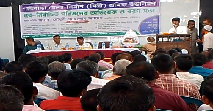 গাইবান্ধায় নির্মাণ (মিস্ত্রী) শ্রমিক ইউনিয়ন নব-নির্বাচিত পরিষদের অভিষেক ও বরণ সভা গাইবান্ধা পাবলিক লাইব্রেরী হল মিলনায়তনে নবনির্বাচিত কমিটির সভাপতি সেক্রেটারিসহ সকল সদস্যদের শপথ বাক্য পাঠ করায় গাইবান্ধায় নির্মাণ (মিস্ত্রী) শ্রমিক ইউনিয়নে প্রধান নির্বাচন কমিশনার উপকমিটি মোঃ ইউনুছ আলী।