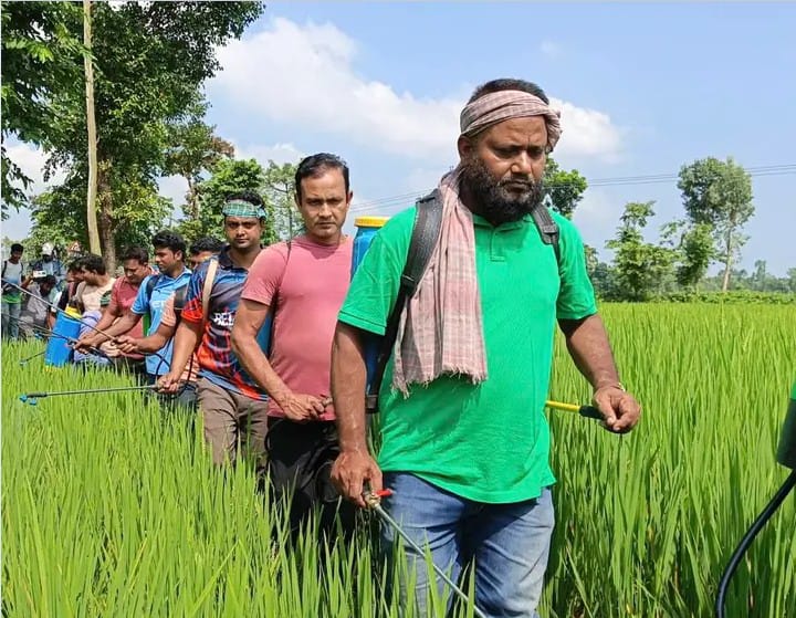 লালমনিরহাট জেলার সদর উপজেলার কুলাঘাট ইউনিয়ন স্বেচ্ছাসেবক দলের উদ্যোগে কৃষকের ধান ক্ষেতের মাঝে বালাই নাশক ঔষধ সরাসরি বিনামূল্যে স্প্রে করেন ।