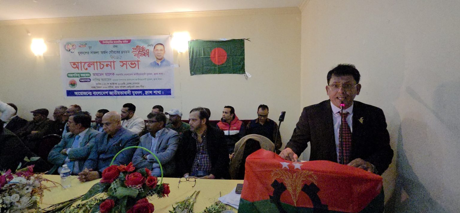 বাংলাদেশ জাতীয়তাবাদী যুবদলের ৪৭তম প্রতিষ্ঠাবার্ষিকী উপলক্ষে ফ্রান্স জাতীয়তাবাদী যুবদল এক বর্ণাঢ্য আলোচনা সভার আয়োজন করে। অনুষ্ঠানটির সভাপতিত্ব করেন আহমেদ মালেক এবং সঞ্চালনা করেন নাসিম আহমেদ।