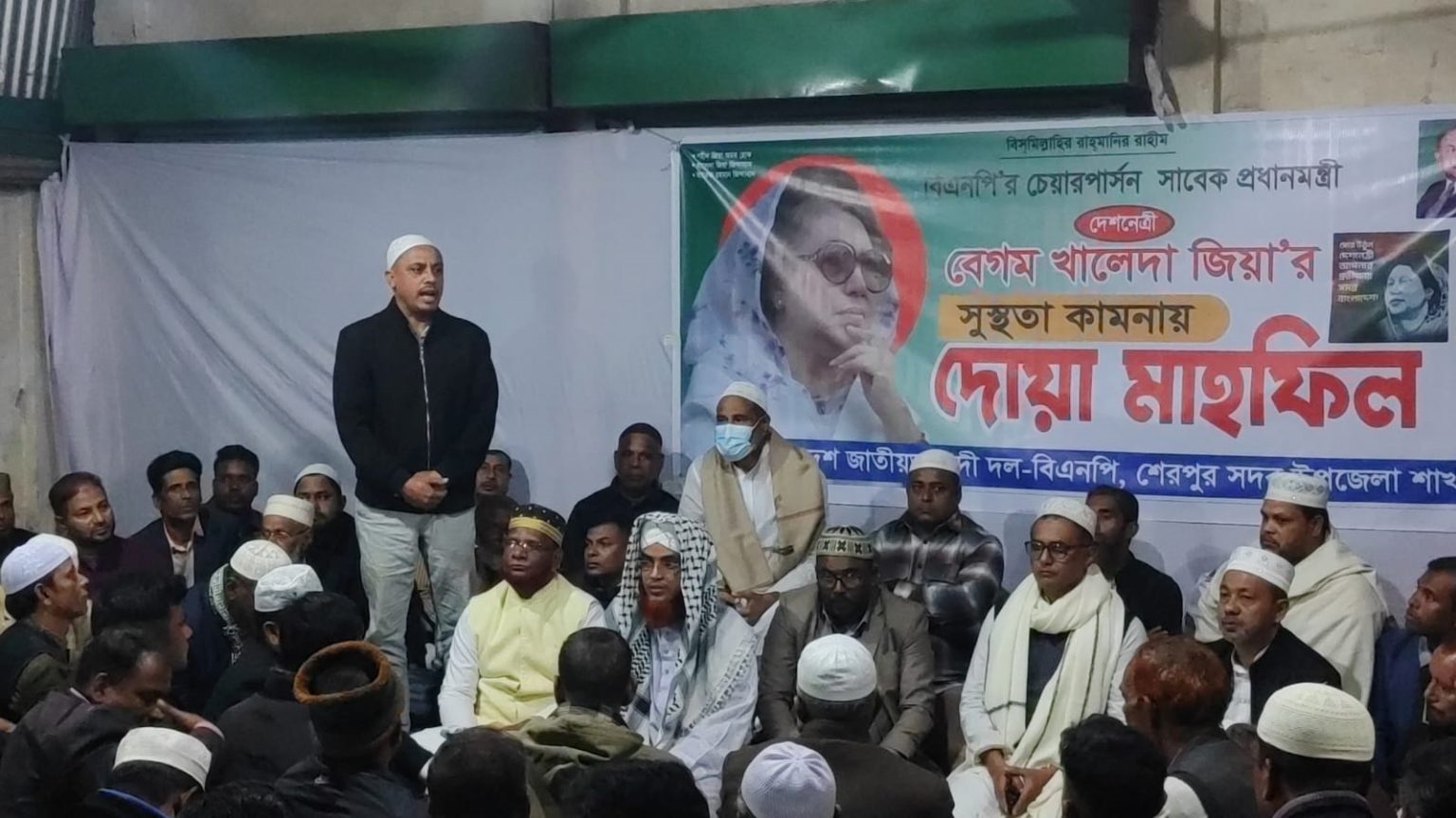 বাংলাদেশের তিনবারের সাবেক প্রধানমন্ত্রী ও বিএনপি চেয়ারপার্সন বেগম খালেদা জিয়া বর্তমানে চিকিৎসাধীন রয়েছেন। তার দ্রুত আরোগ্য কামনায় দেশ-বিদেশের মানুষের মাঝে চলছে দোয়া ও প্রার্থনা। দল-মত নির্বিশেষে সবাই তার সুস্থতা কামনা করে আসছেন। এ উপলক্ষে ২৯ নভেম্বর শনিবার সন্ধ্যা ৭টায় শেরপুর জেলা শহরের রঘুনাথ বাজার জেলা বিএনপির দলীয় কার্যালয়ে বিএনপি চেয়ারপার্সন বেগম খালেদা জিয়ার রোগমুক্তি কামনায় দোয়া মাহফিল ও মোনাজাত অনুষ্ঠিত হয়।