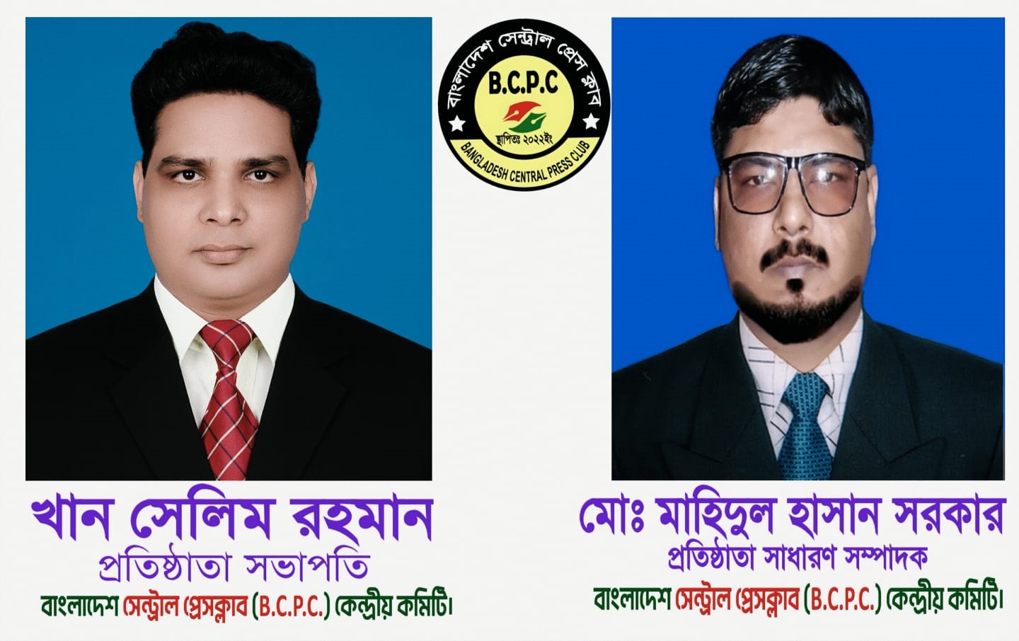 বাংলাদেশ সেন্ট্রাল প্রেস ক্লাব (B.C.P.C) প্রতিষ্ঠাতা সভাপতি হিসেবে দায়িত্ব পালন করছেন খান সেলিম রহমান এবং প্রতিষ্ঠাতা সাধারণ সম্পাদক হিসেবে রয়েছেন মোঃ মাহিদুল হাসান সরকার।