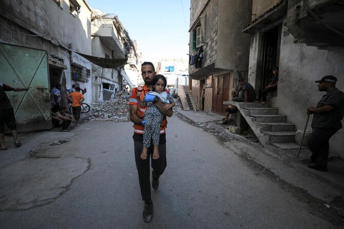 গাজা উপত্যকা, ফিলিস্তিনী অঞ্চল, ২ সেপ্টেম্বর, ২০২৪: বাস্তুচ্যুত হয়ে ফিলিস্তিনীদের আশ্রয় নেয়া গাজার একটি স্কুলে পুলিশের একটি দলকে লক্ষ্য করে ইসরাইলি বিমান হামলায় অন্তত ১১ জন নিহত হয়েছে।