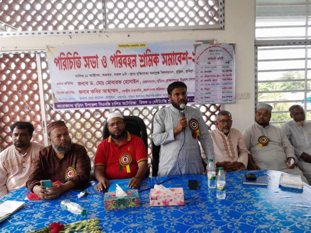 বাংলাদেশ জামায়াতে ইসলামীর অঙ্গ সংগঠন বাংলাদেশ শ্রমিক কল্যাণ ফেডারেশনের আওতাধীন বুড়িচং উপজেলা সিএনজি চালিত অটোরিক্সা, মিশুক ও বেবীটেক্সি শ্রমিক ইউনিয়নের উদ্যোগে শ্রমিক সমাবেশ ১১ অক্টোবর শুক্রবার সকাল ৯টায় মুক্তিযোদ্ধা কমপ্লেক্স মিলনায়তনে অনুষ্ঠিত হয়েছে।