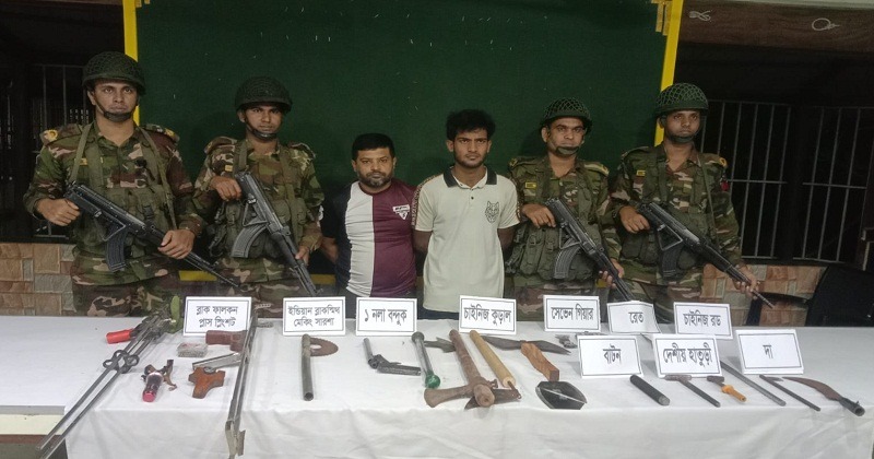 যশোরে একটি বন্দুক ও ১৯ ধরনের ধারালো অস্ত্রসহ চিহ্নিত দুই সন্ত্রাসীকে আটক করেছে যৌথবাহিনী। শুক্রবার দিবাগত রাত ৩টার দিকে শহরের বারান্দি মোল্লাপাড়া এলাকায় অভিযান চালিয়ে তাদের আটক করা হয়।